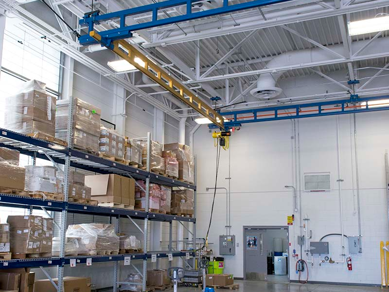 Una grúa puente montada en el techo es ideal para edificios con estructuras de concreto, acero o aluminio.